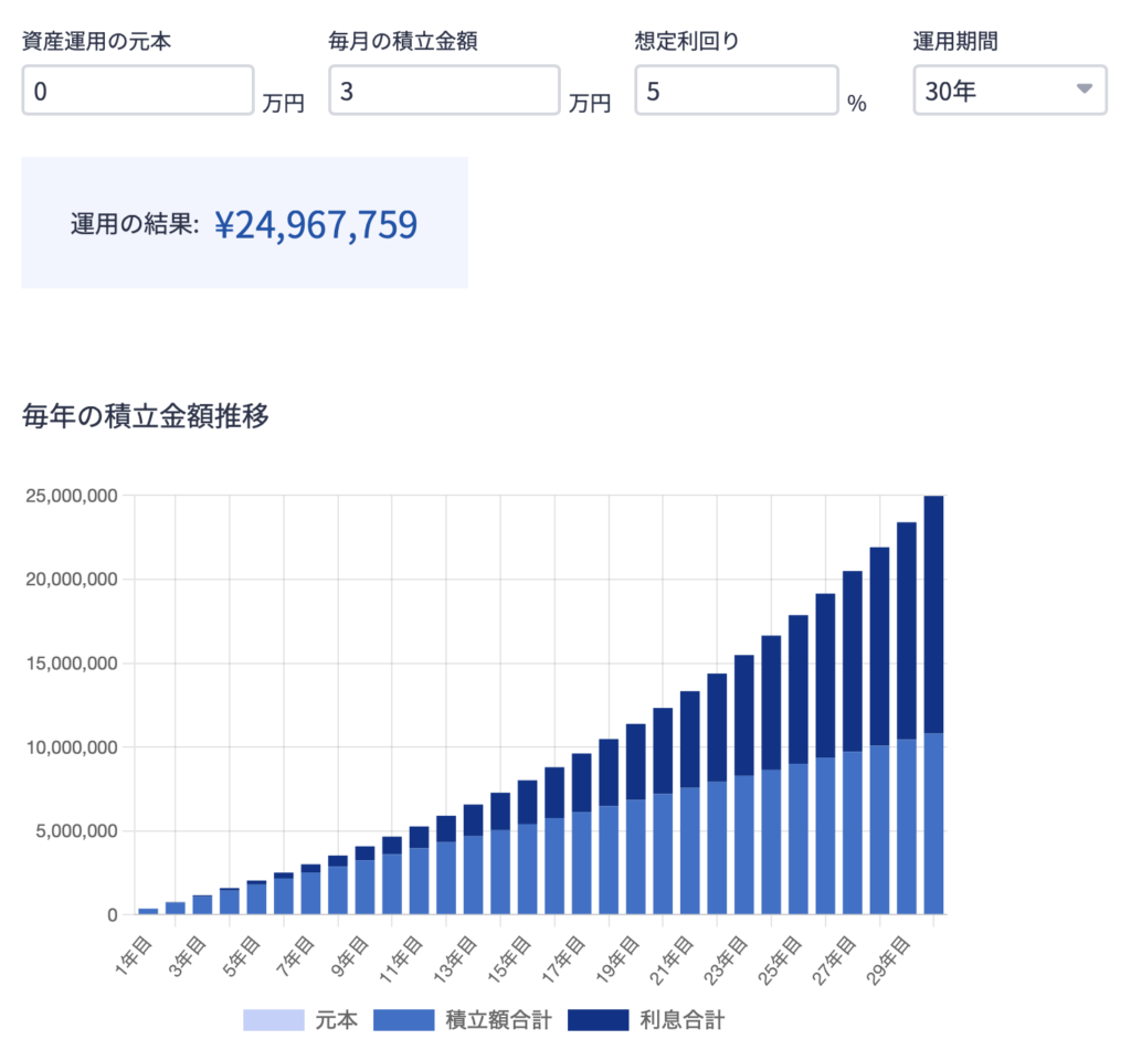 しかし実際には、月3万円の積立だけで将来3,000万円以上の資産を作ることは十分に現実的です。